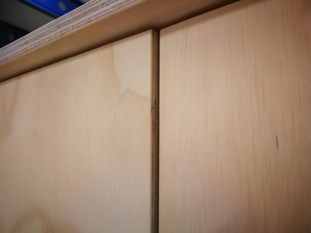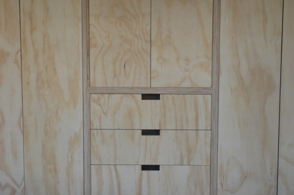 Chileens radiata pine is opgebouwd uit 7 laagjes. Dat heeft invloed op de stabiliteit en 7 laagjes is niet veel. De plaat kan dus kromtrekken of al krom zijn. Duidelijker is: het is een uitzondering als een plaat chiliplex volledig vlak is en blijft. Dit is vooral van invloed en merkbaar bij grotere oppervlakte en delen die zich vrij kunnen bewegen, zoals (schuif)deuren. Daarom maken we de deuren liever niet te groot. Ga er vanuit dat elke deur wel een lichte afwijking heeft en dat dit ‘part of the deal’ is met meubels van underlayment.