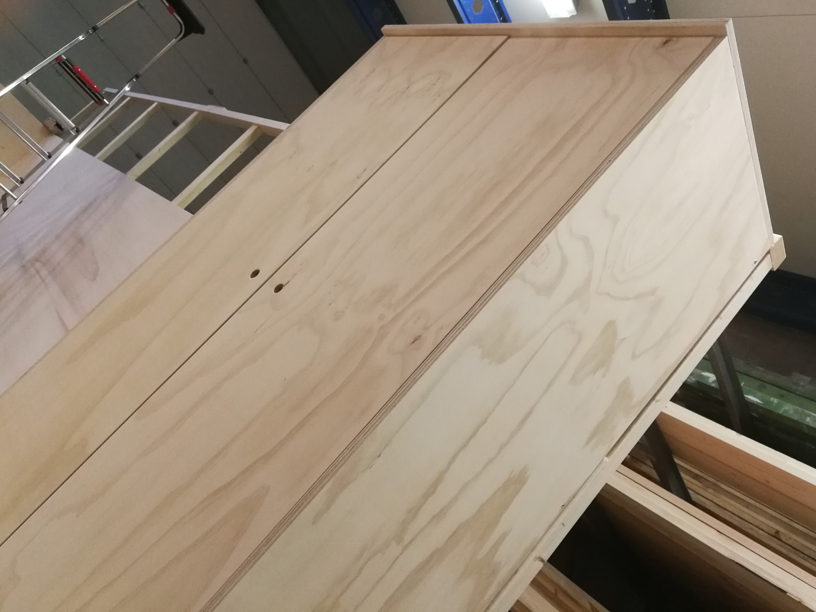 Bij het ontwerpen is het goed om rekening te houden met de mogelijkheden en de beperkingen van het underlayment. Standaard is de dikte doorgaans 18 mm. Een plaat is 244 cm lang en 122 cm breed. Bij een te grote vrije overspanning gaat de plaat doorbuigen. Een deur moet je niet te groot maken i.v.m. kromtrekken. Dat soort dingen. Verder is het goed om te weten dat een plaat underlayment een mooie en een minder mooie zijde heeft. Dat is vaak echt een wereld van verschil.